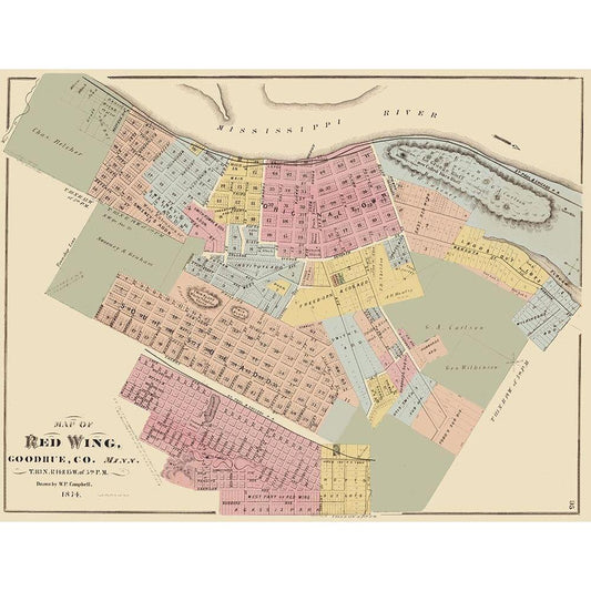 Red Wing Minnesota - Andreas 1874 Gold Ornate Wood Framed Art Print with Double Matting by Andreas