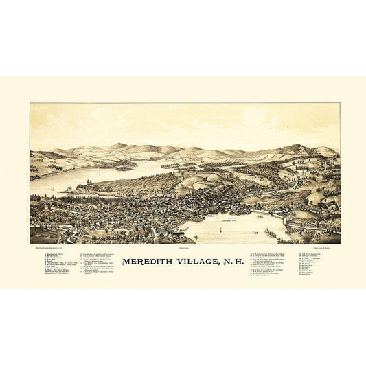 Meredith Village New Hampshire - Norris 1889 Gold Ornate Wood Framed Art Print with Double Matting by Norris