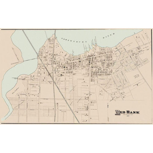 Red Bank New Jersey Landowner - Woolman 1878 Gold Ornate Wood Framed Art Print with Double Matting by Woolman