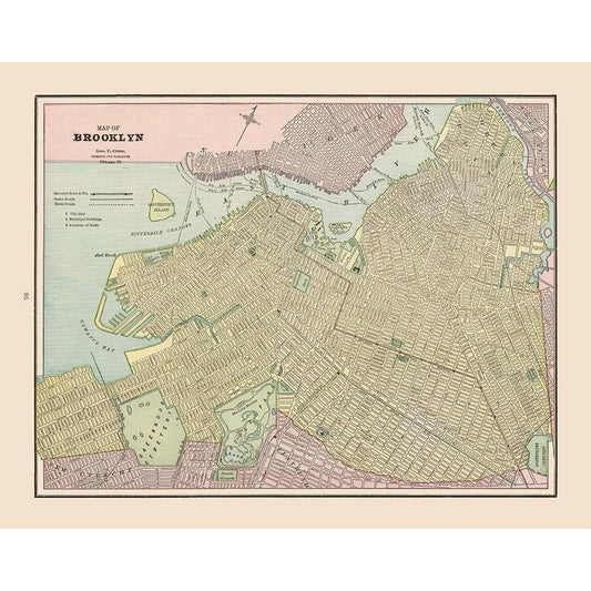 Brooklyn New York - Cram 1892 Gold Ornate Wood Framed Art Print with Double Matting by Cram