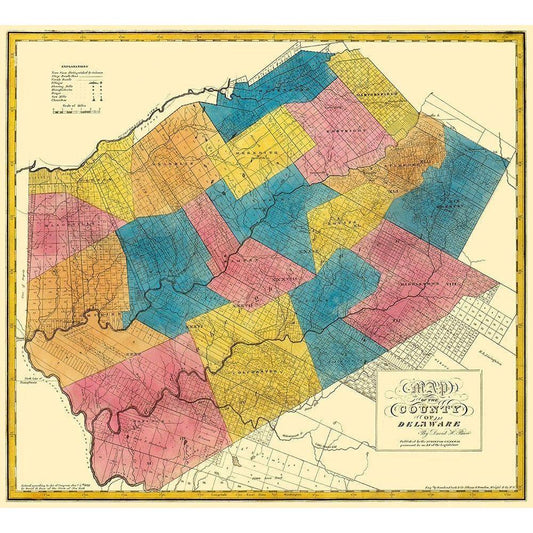 Delaware New York Landowner - Burr 1829 Gold Ornate Wood Framed Art Print with Double Matting by Burr