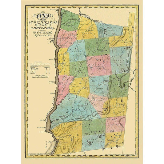 Dutchess Putnam New York - Burr 1829 Gold Ornate Wood Framed Art Print with Double Matting by Burr