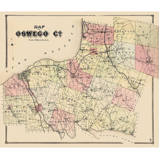 Oswego New York - Burr 1866 Gold Ornate Wood Framed Art Print with Double Matting by Burr