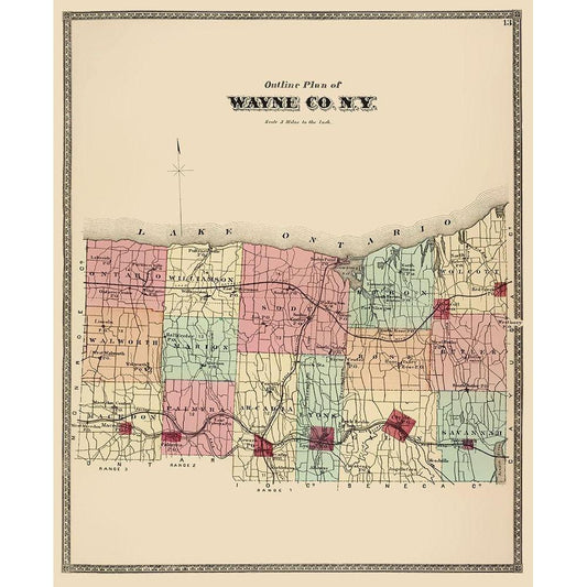 Wayne New York - Beers 1875 Gold Ornate Wood Framed Art Print with Double Matting by Beers