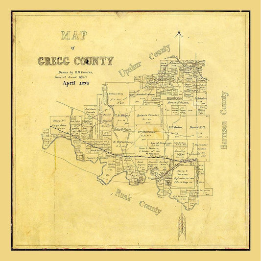 Gregg County Texas - Cousins 1874 Gold Ornate Wood Framed Art Print with Double Matting by Cousins