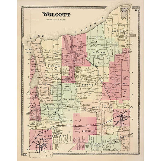 Wolcott New York Landowner - Beers 1874 Gold Ornate Wood Framed Art Print with Double Matting by Beers