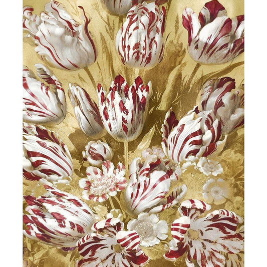 Tulip Bouquet in Red Gold Ornate Wood Framed Art Print with Double Matting by McQueen, Angela