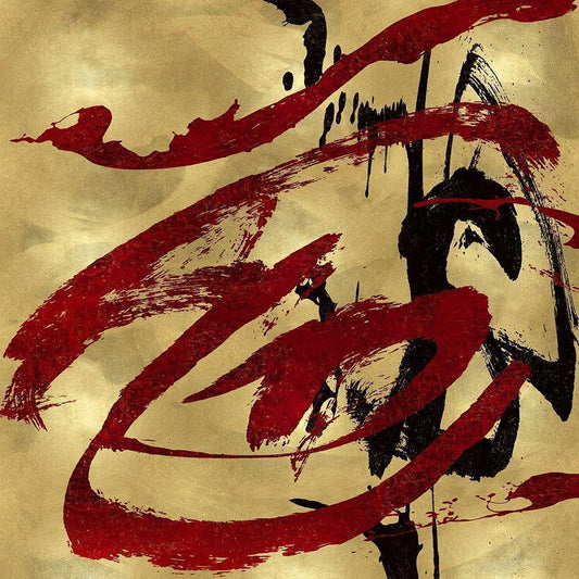 Feisty Red on Gold Gold Ornate Wood Framed Art Print with Double Matting by Davila, Jordan