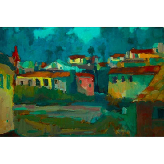 The Village Gold Ornate Wood Framed Art Print with Double Matting by Barbini, Eddie