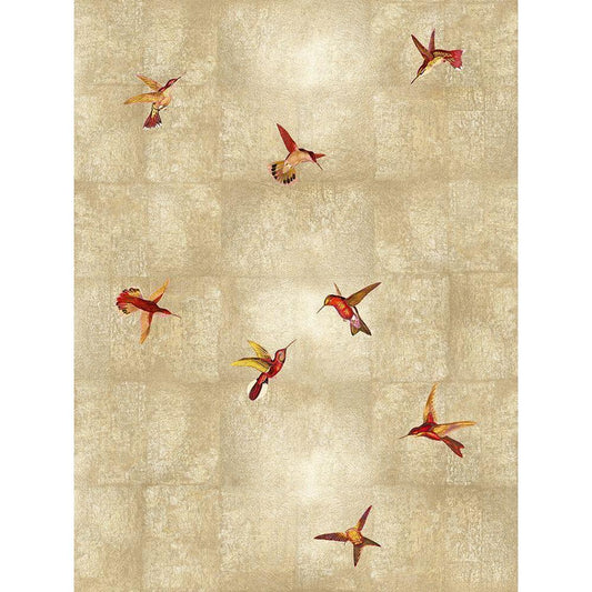 Hummingbirds Red on Gold I Gold Ornate Wood Framed Art Print with Double Matting by Blake, Madeline