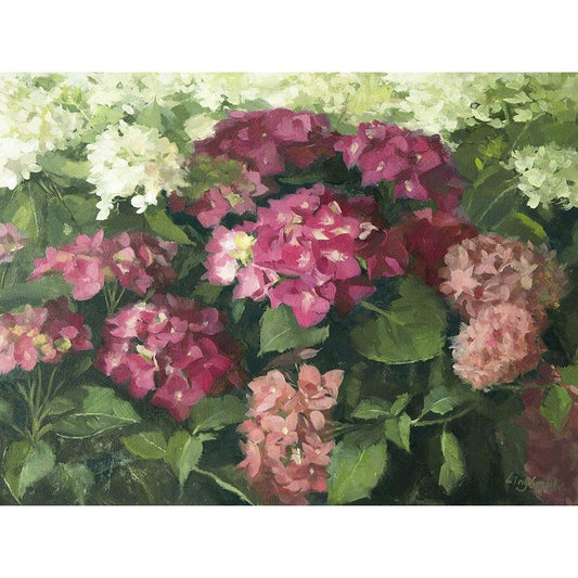 German Hydrangeas Gold Ornate Wood Framed Art Print with Double Matting by Strube, Ling
