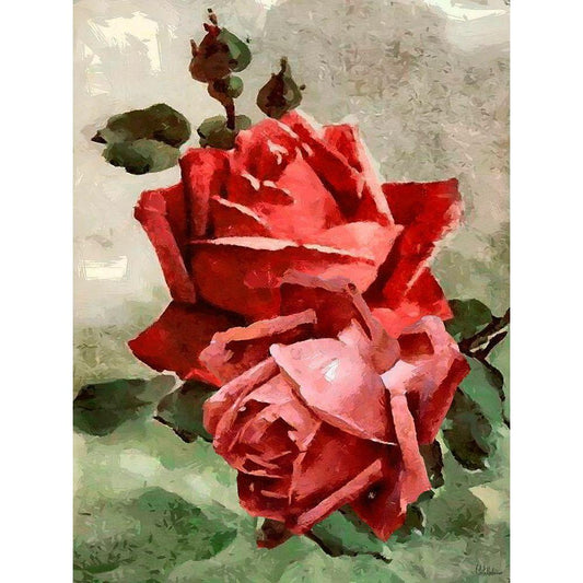 Red Roses II Gold Ornate Wood Framed Art Print with Double Matting by Medeiros, Celito
