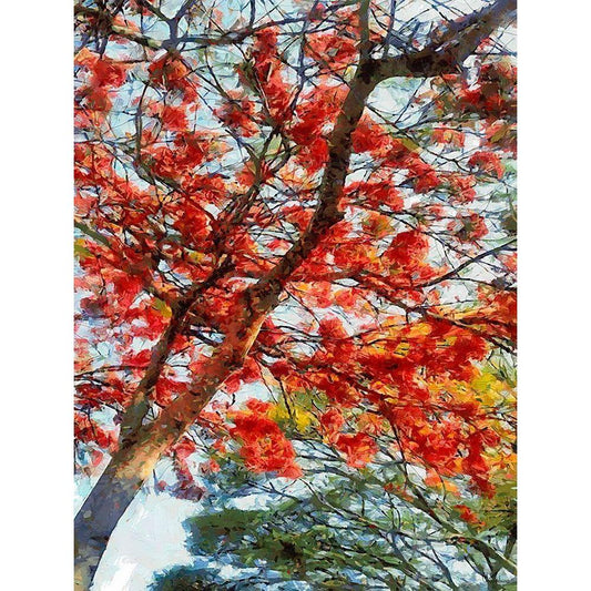 Tree with red Leaves Gold Ornate Wood Framed Art Print with Double Matting by Medeiros, Celito