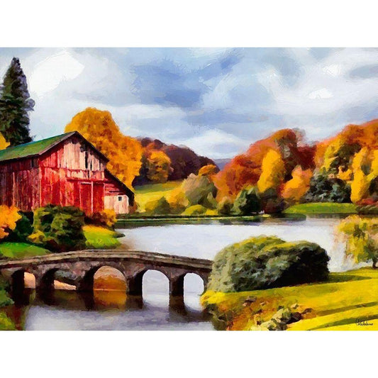Red House with Stone Bridge Gold Ornate Wood Framed Art Print with Double Matting by Medeiros, Celito