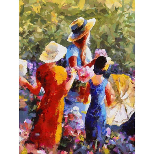 Three Girls with Umbrella Gold Ornate Wood Framed Art Print with Double Matting by Medeiros, Celito