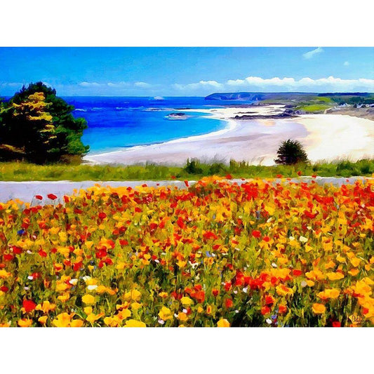 Flowers on the Field near Beach Gold Ornate Wood Framed Art Print with Double Matting by Medeiros, Celito