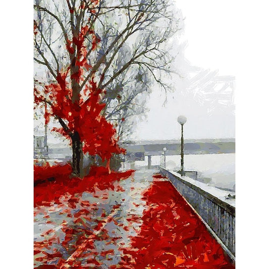 Red Leaves Gold Ornate Wood Framed Art Print with Double Matting by Medeiros, Celito