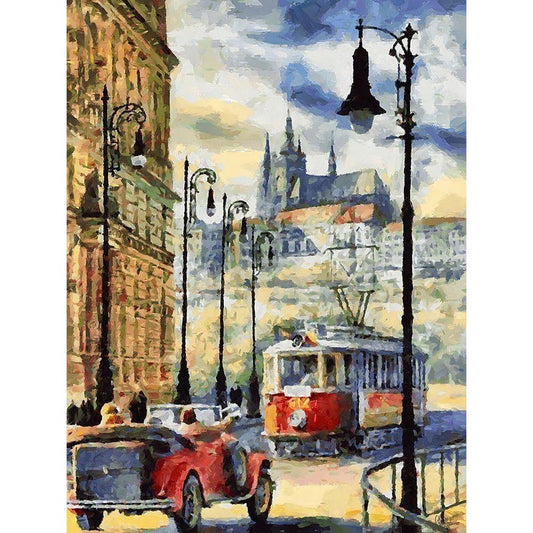 Tram in Prague Gold Ornate Wood Framed Art Print with Double Matting by Medeiros, Celito