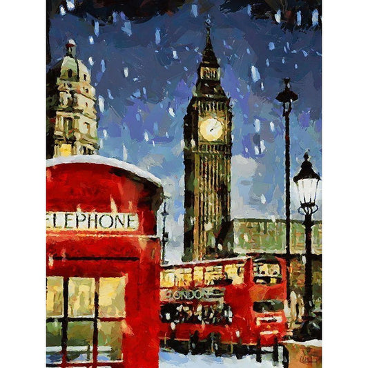London in Red Gold Ornate Wood Framed Art Print with Double Matting by Medeiros, Celito