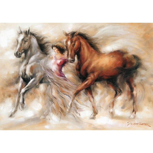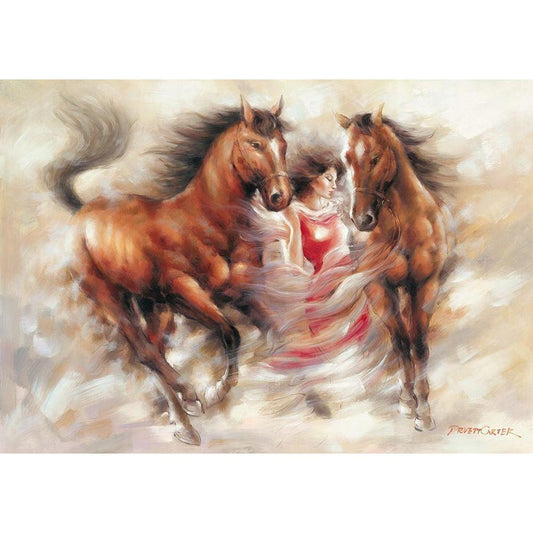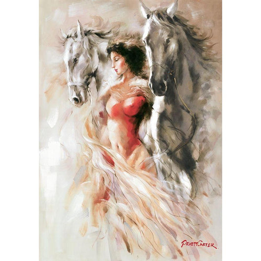 Ann with Horses I Gold Ornate Wood Framed Art Print with Double Matting by Carter, Prvett
