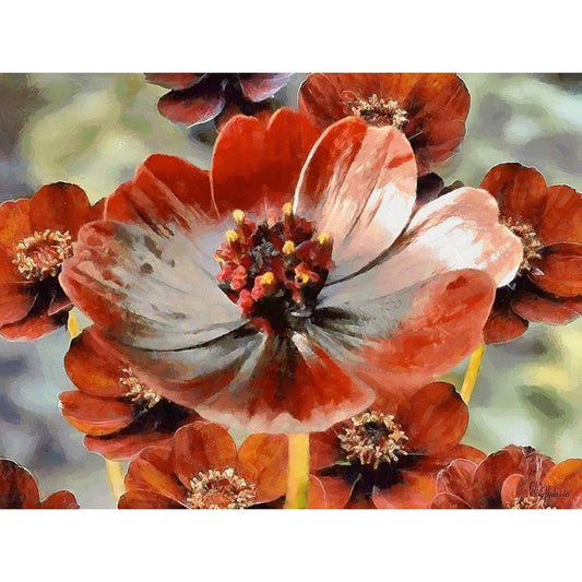 Red Flowering Tree Gold Ornate Wood Framed Art Print with Double Matting by Medeiros, Celito