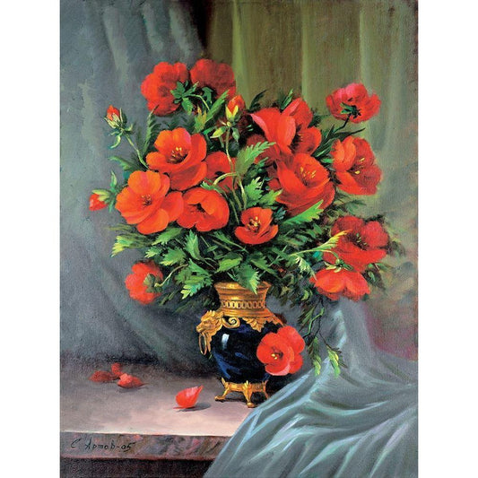 Poppies in Vase Gold Ornate Wood Framed Art Print with Double Matting by Belousova, Irina