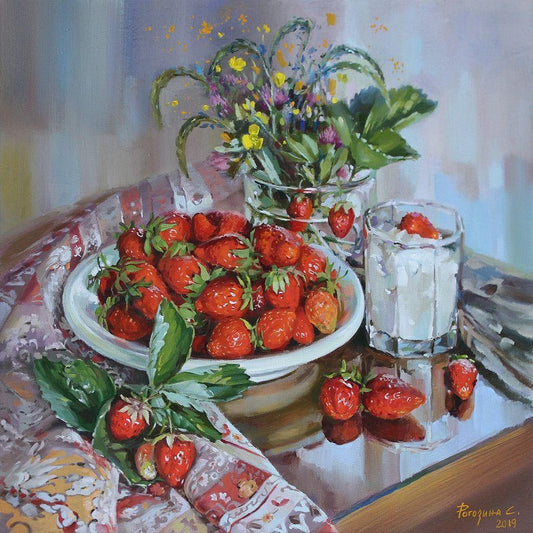 Sweet Strawberries Gold Ornate Wood Framed Art Print with Double Matting by Rogozina, Svetlana