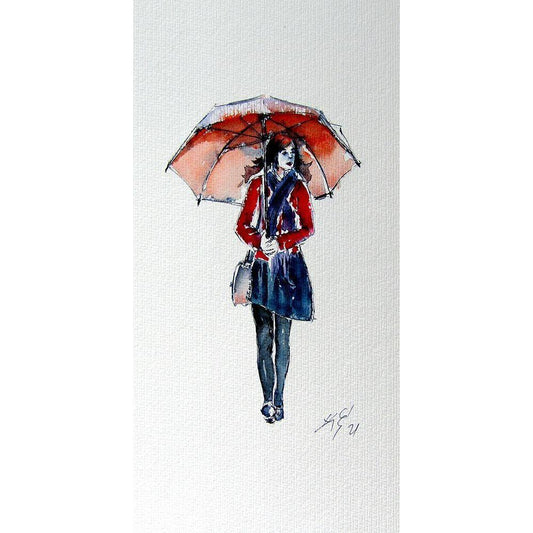 Walking Girl with Umbrella Gold Ornate Wood Framed Art Print with Double Matting by Kovacs, Anna Brigite