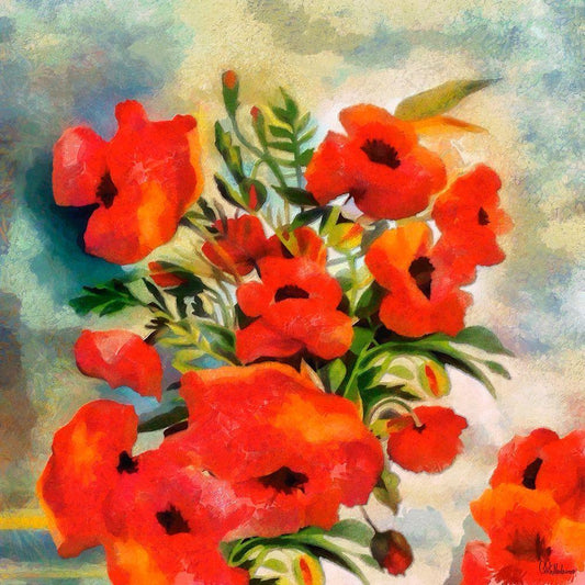 Poppies Gold Ornate Wood Framed Art Print with Double Matting by Medeiros, Celito