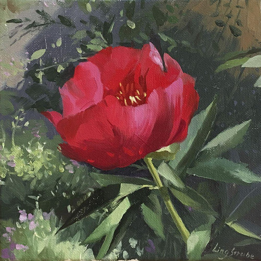 Peony Gold Ornate Wood Framed Art Print with Double Matting by Strube, Ling