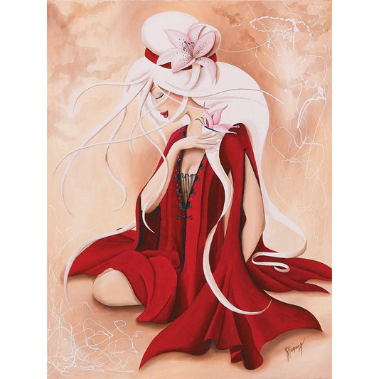 Lilou in Red Gold Ornate Wood Framed Art Print with Double Matting by Rhumeur, Aurelie