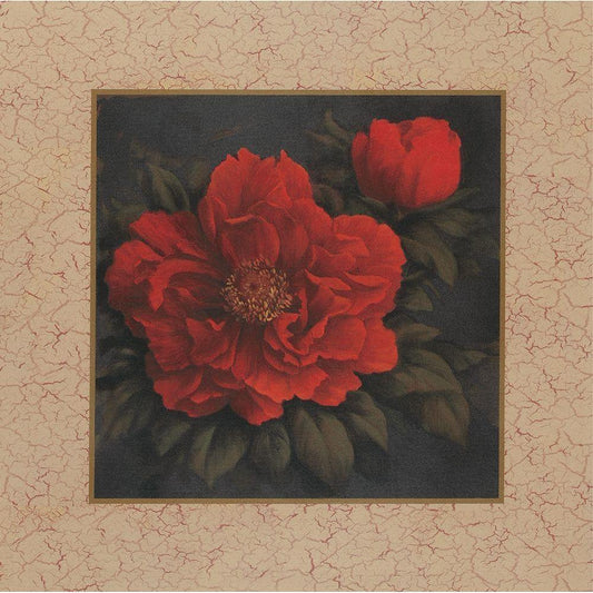 Modern Red Floral Gold Ornate Wood Framed Art Print with Double Matting by Unknown