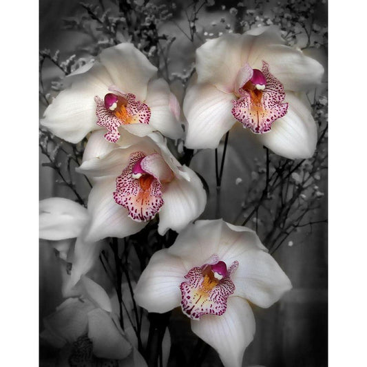 Cymbidium Orchid White Gold Ornate Wood Framed Art Print with Double Matting by Maloratsky, Igor