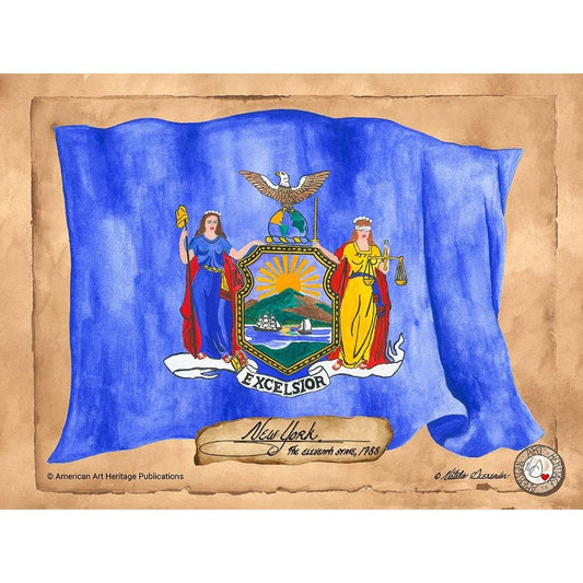 Fab 51 States Gold Ornate Wood Framed Art Print with Double Matting by Alexander, Natalie