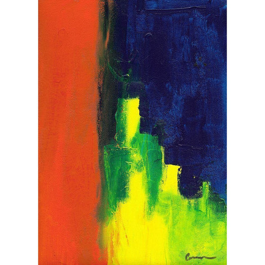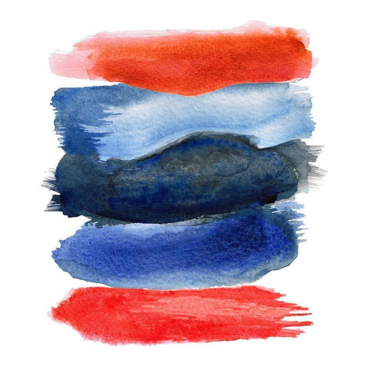 Brushstroke Red and Blue Gold Ornate Wood Framed Art Print with Double Matting by Inuit