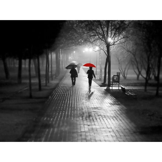 Umbrella Walk Gold Ornate Wood Framed Art Print with Double Matting by Anonymous