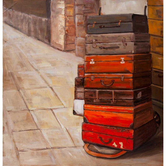 Old Traveling Suitcases Gold Ornate Wood Framed Art Print with Double Matting by Atelier B Art Studio
