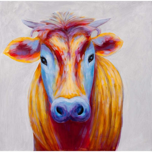 Colorful Country Cow Gold Ornate Wood Framed Art Print with Double Matting by Atelier B Art Studio