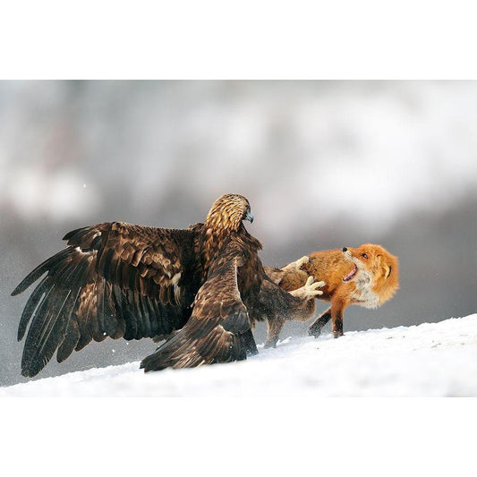 Golden Eagle And Red Fox Gold Ornate Wood Framed Art Print with Double Matting by Adams, Yves