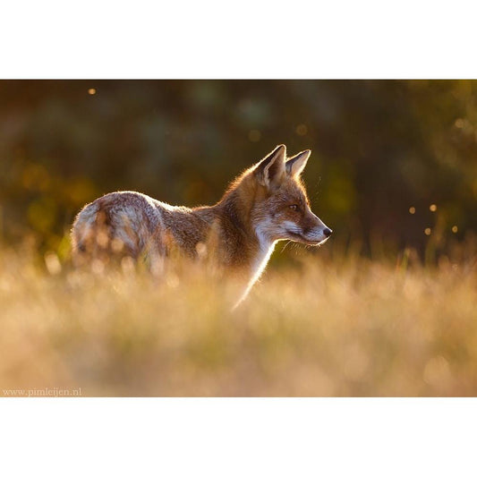 Last Light Fox Gold Ornate Wood Framed Art Print with Double Matting by Leijen, Pim