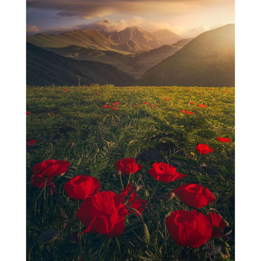 Flowers on Fire Gold Ornate Wood Framed Art Print with Double Matting by Sulaiman Alshehhi, Ahmed