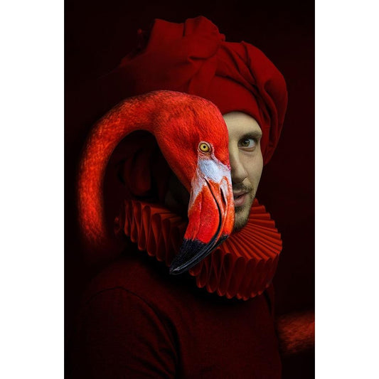 Red Flamingo Gold Ornate Wood Framed Art Print with Double Matting by Adrian Chis, Paul