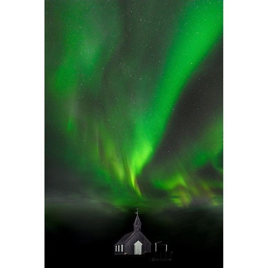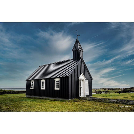 Black Church In Iceland Gold Ornate Wood Framed Art Print with Double Matting by Gudmundsson, Kristvin