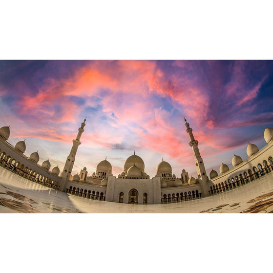Sheikh Zayed Grand Mosque - Sunset Gold Ornate Wood Framed Art Print with Double Matting by Abu Milad, Emil