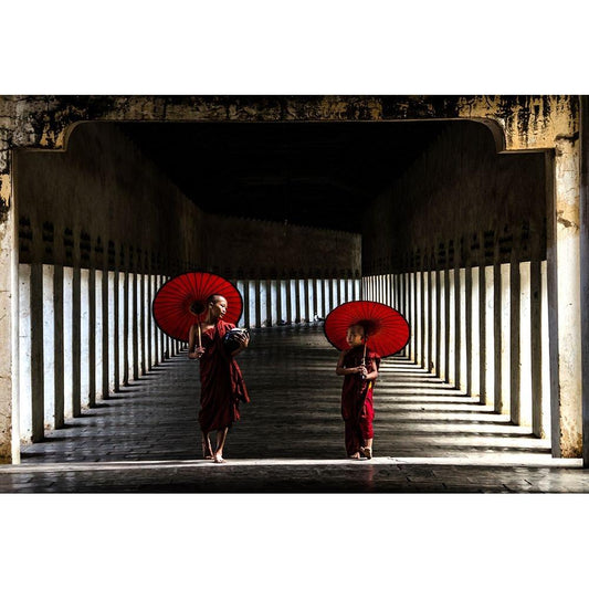 Two Monks Walking Home Gold Ornate Wood Framed Art Print with Double Matting by Rana, Ajit