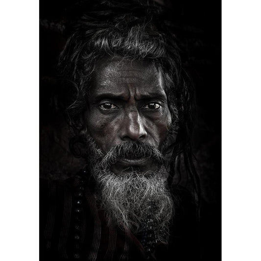 Saddhu Looking Without Seeing Gold Ornate Wood Framed Art Print with Double Matting by Molina, Elena