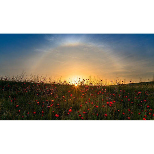 Red Poppies And Sunrise Gold Ornate Wood Framed Art Print with Double Matting by Zhu, Hua