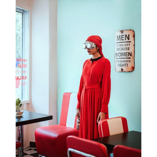 Lady In Red Gold Ornate Wood Framed Art Print with Double Matting by Deng, Larry