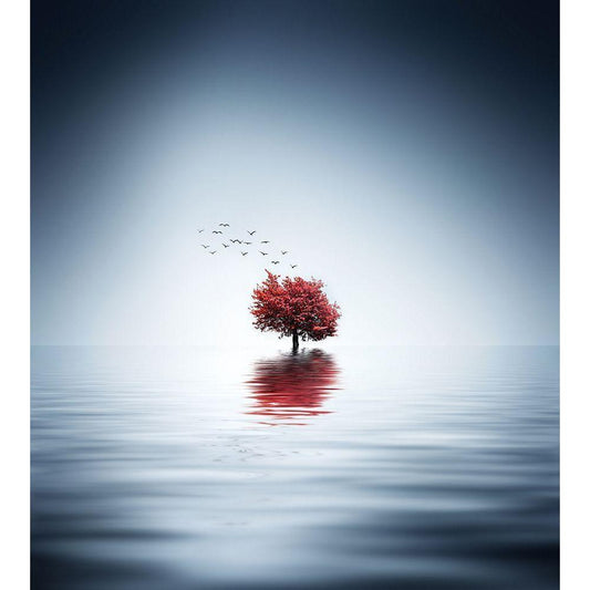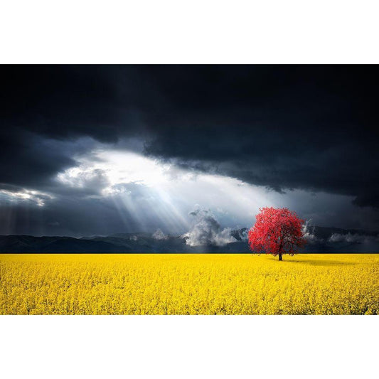 A Red Tree In The Canola Meadow Gold Ornate Wood Framed Art Print with Double Matting by Hamiti, Bess