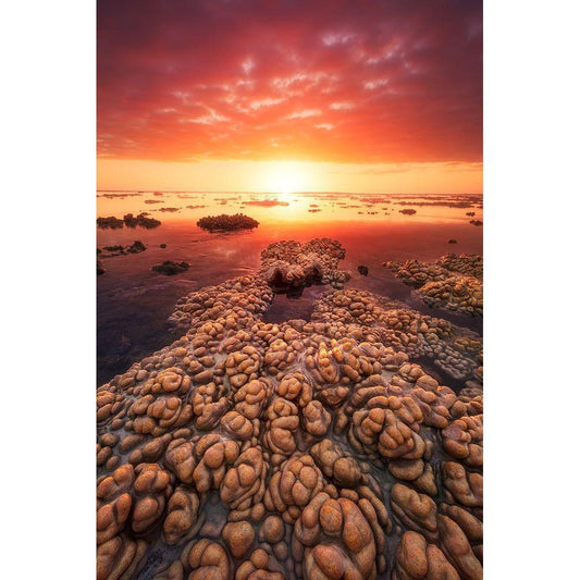 Low Tide On The Lagoon Of Saint Leu. Gold Ornate Wood Framed Art Print with Double Matting by Gabriel, Barathieu